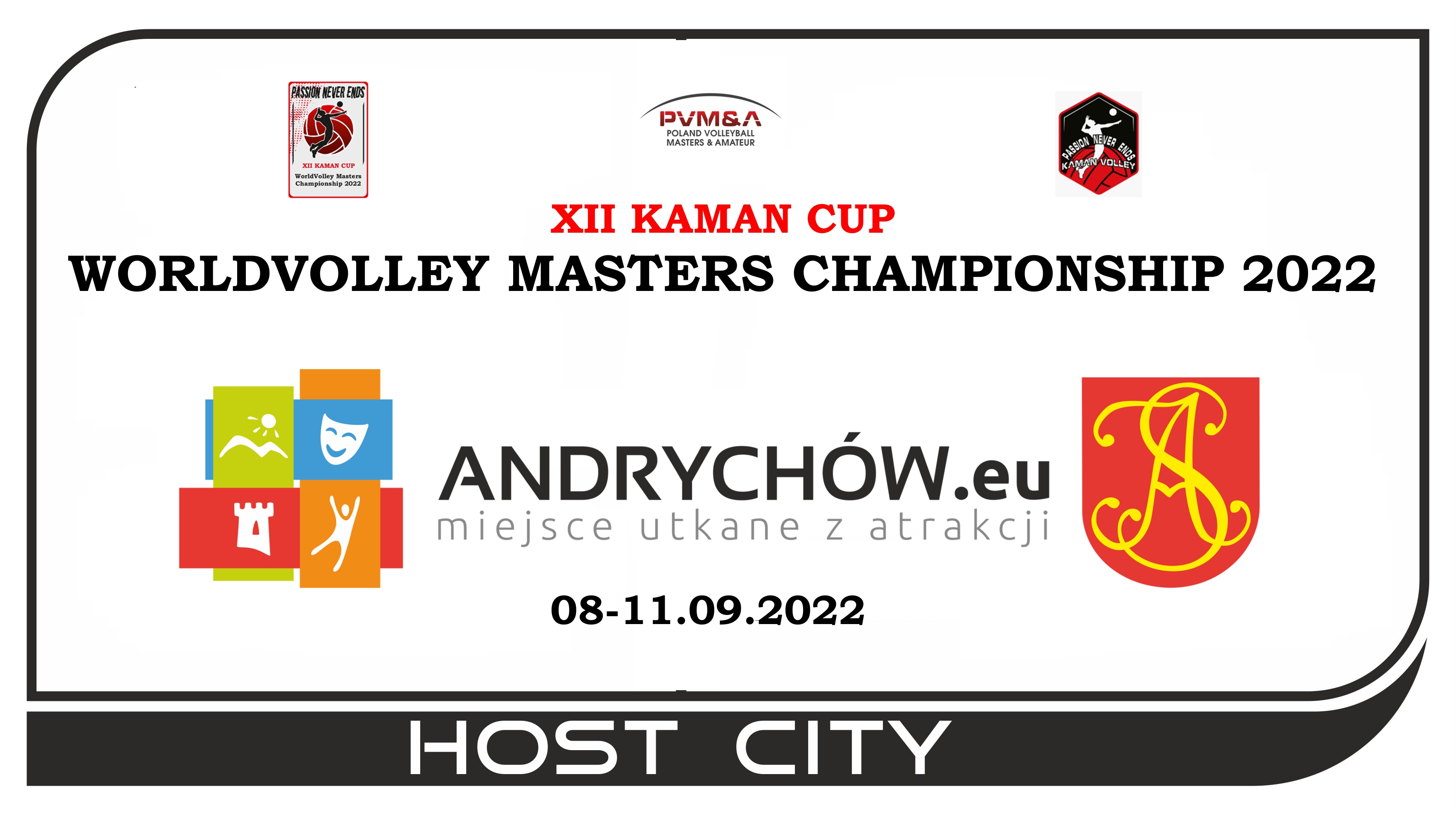 W wyniku nawiązanej współpracy z Panem Tomaszem Żakiem - Burmistrzem Miasta Andrychów oraz Urzędem Miejskim w Andrychowie podjęliśmy wspólną decyzję o organizacji XII Kaman Cup - Światowych Mistrzostw Masters w Piłce Siatkowej Kobiet i Mężczyzn właśnie w tym mieście.